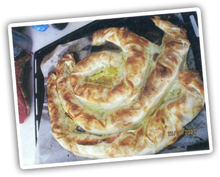 spanaklı kol böreği: (Arzuya göre yufka sayısı değişebilir) Üç yufkadan her biri tezgaha yayılır. Yumurta, süt ve yağdan oluşan harçla yarısı ıslatılır. Kalan kısım yarım daire olacak şekilde diğerinin üzerine katlanır.. Islatma harcı ile tekrar ıslatılan ikiye katlanmış yufkanın düz kısmına (Kırmızı biber, tuz, karabiber) soğan ve ıspanağın kavrulmasıyla oluşan iç harç konur ve rulo şeklinde sarılıp tepsiye aktarılır. Diğerleri de aynı şekilde yapılarak tepsiye aktarıldıktan sonra kalan sıvı harç üzerlerine dökülür ve fırında 30-40 dk piştikten sonra Sıcak servis edilir.