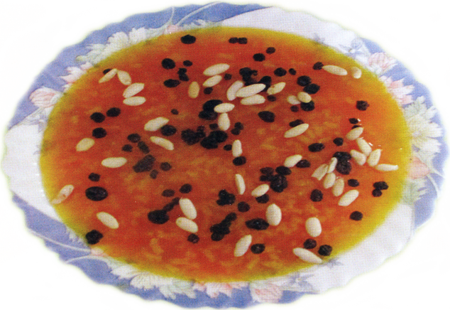 Yapılışı gayet kolaydır: Bir su bardağı suyla yarım su bardağı pirinç yumuşayıncaya kadar pişirildikten sonra üzerine bir süre suda bekletilen zerdeçal ya da safran ile bir çay bardağı suda eritilmiş bir yemek kaşığı nişasta bir su bardağı şeker ile üç su bardağı suyun ilâvesiyle karıştırılarak pişirilir. Kaynayınca kaselere alındıktan sonra üzerine kuş üzümü ve fıstık serpilerek servis edilir.