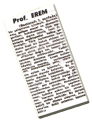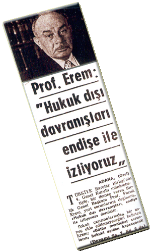 Prof. Faruk Erem yurt sorunlarına değinmiş, "Hukuk dışı davranışları endişe ile izliyoruz" demiştir.